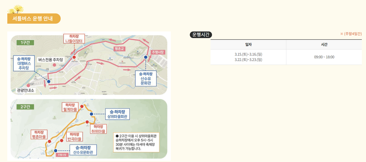 - 2구간 이용시 상위 마음 회관 승하차장에서 오후 5시 ~5시 30분 사이에 타셔야 축제장 복귀가 가능합니다!!